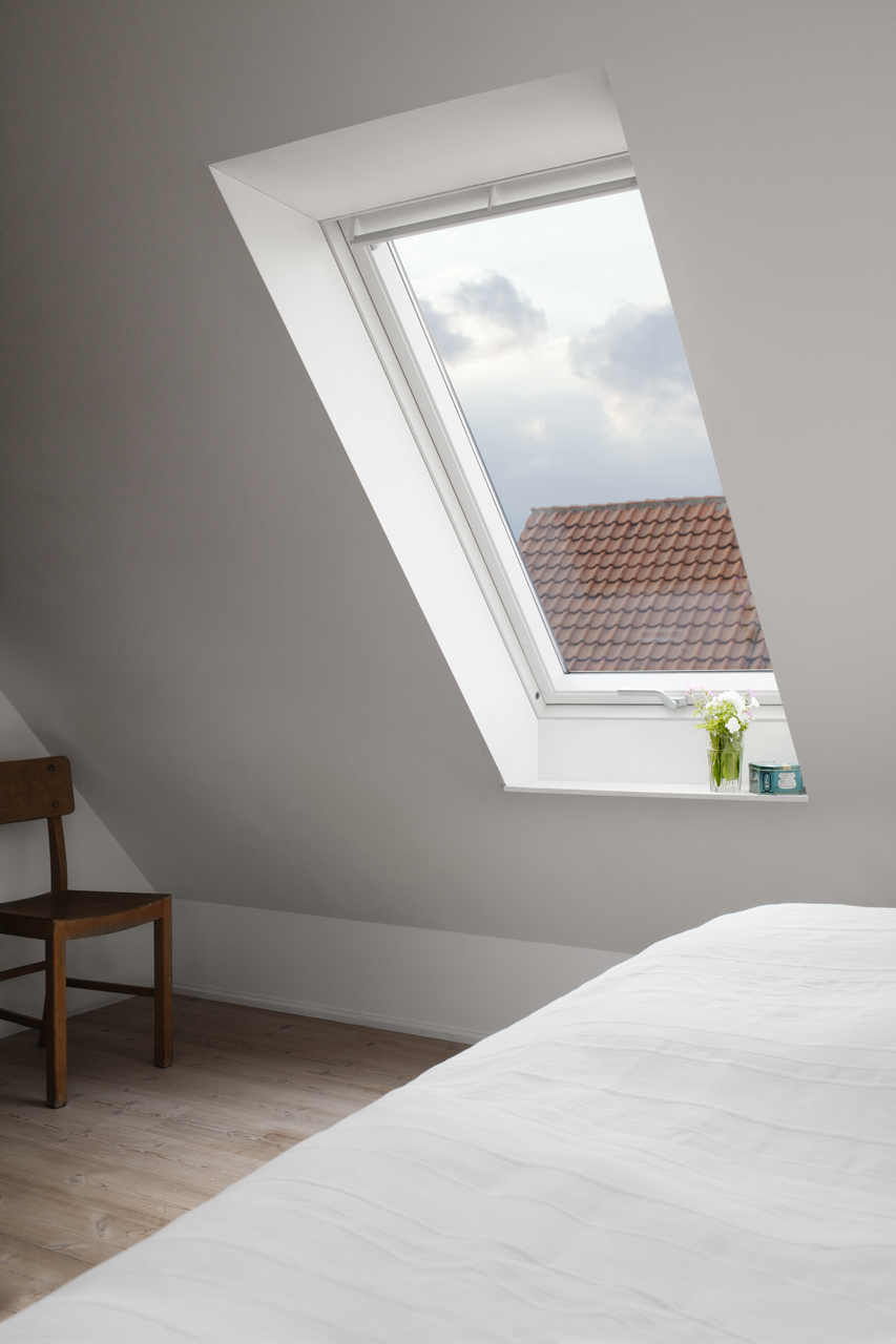 Bruk håndtaket i bunnen for å åpne vinduet utover, len deg ut og nyt en uforstyrret panoramautsikt med VELUX topphengslede takvindu. Takvinduet skaper en balkonglignende følelse når vinduet åpnes, og er vårt anbefalte valg for å få den beste utsikten og følelsen av ekstra plass. Enkel åpning for en behagelig panoramautsikt