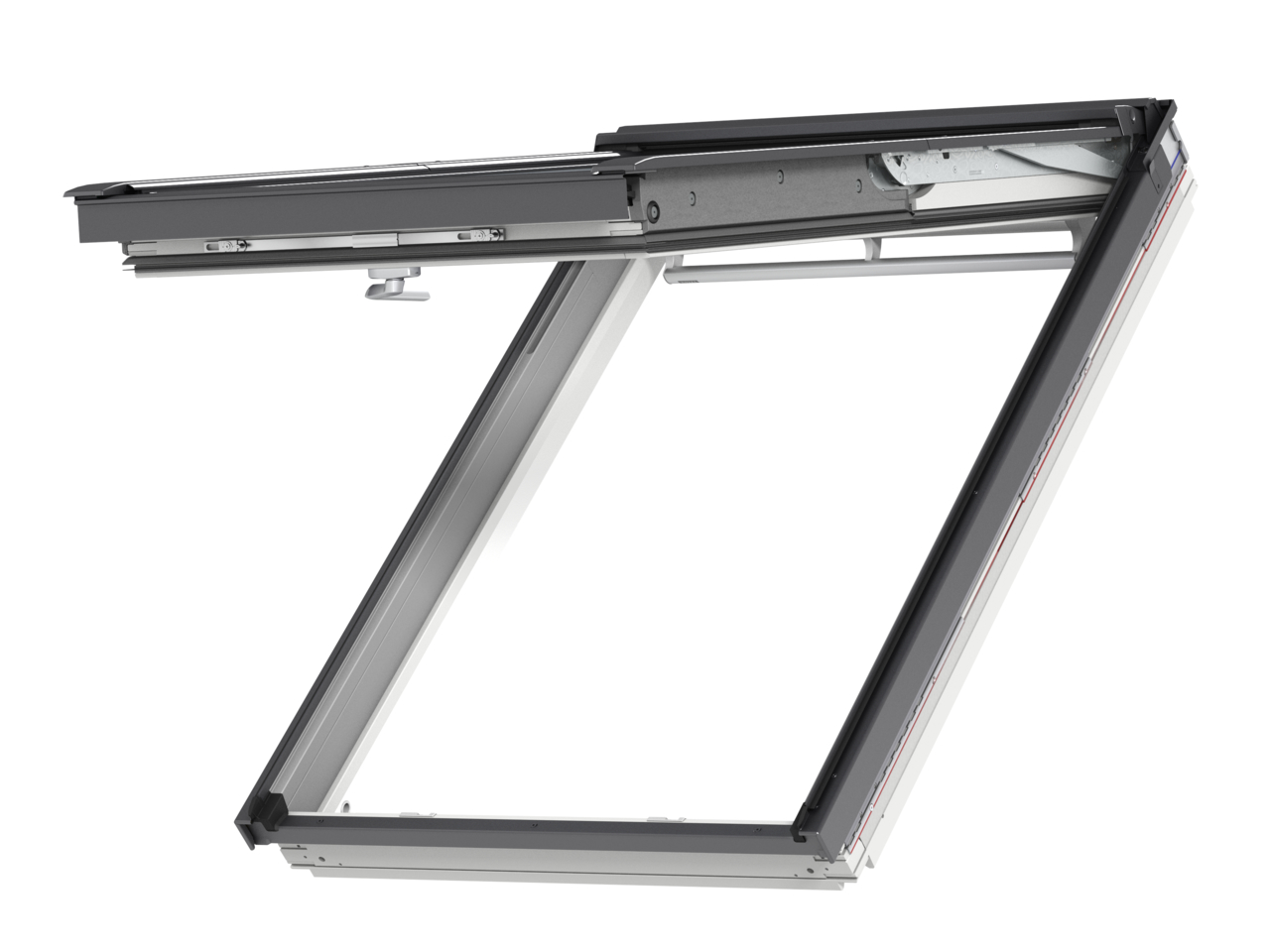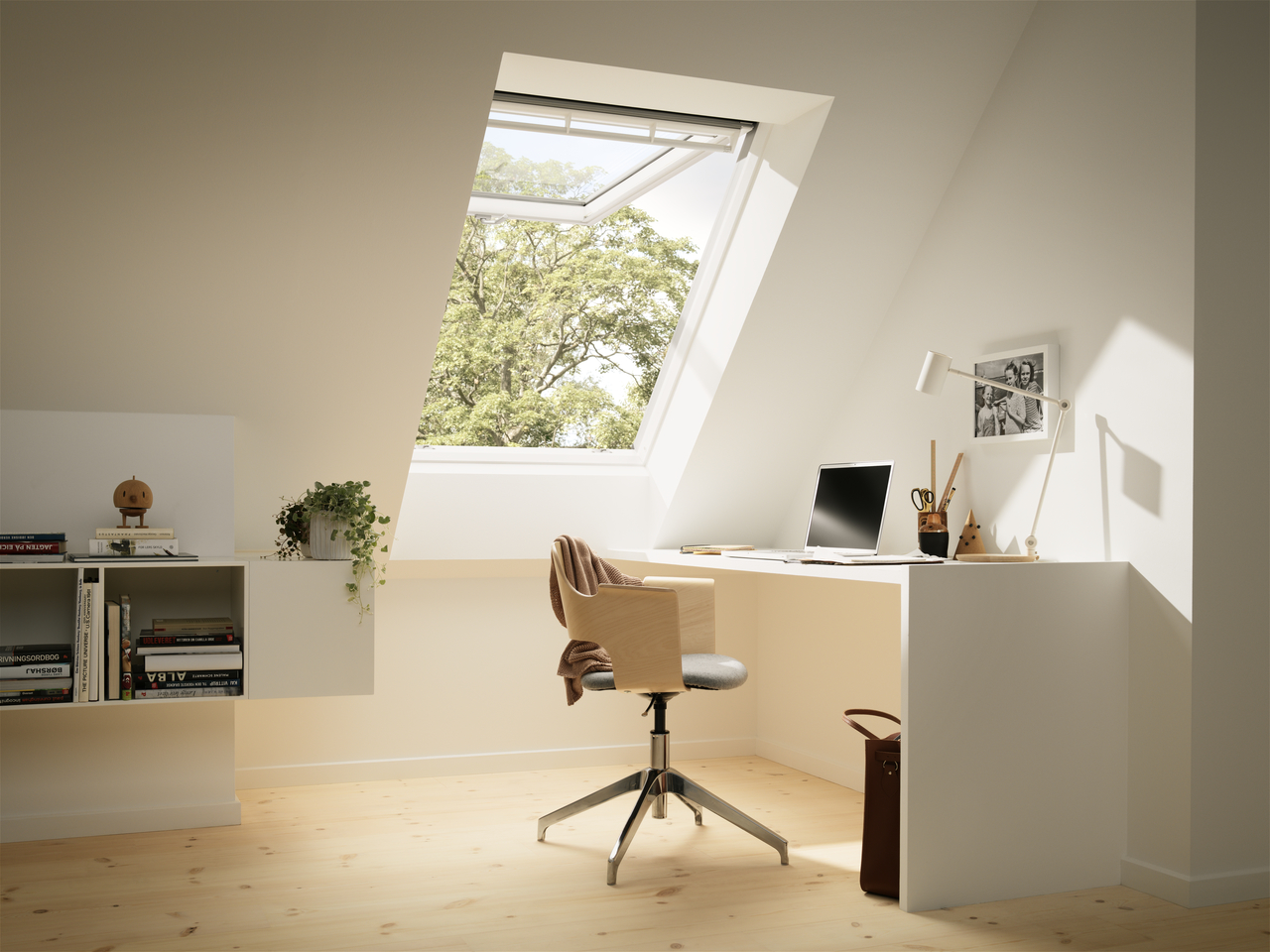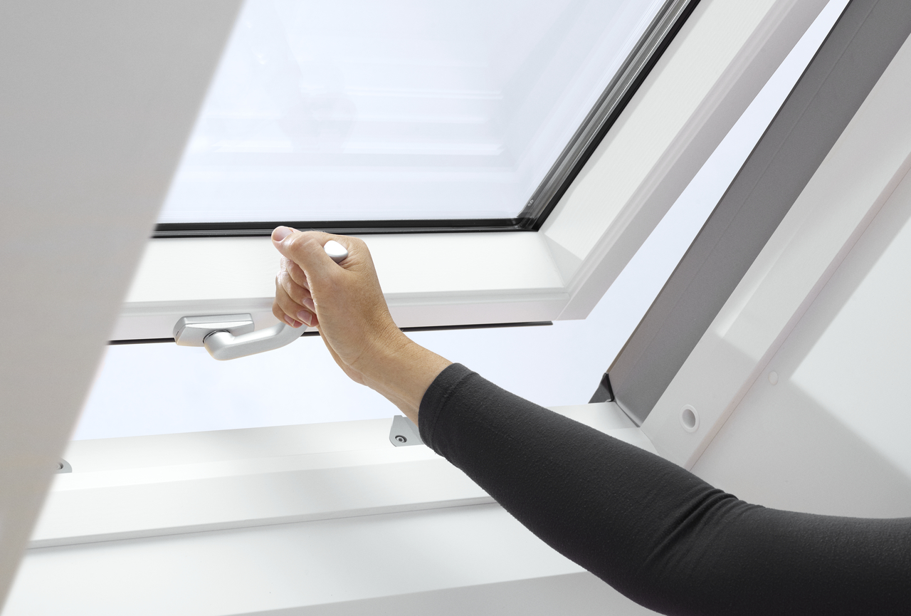 Bruk håndtaket i bunnen for å åpne vinduet utover, len deg ut og nyt en uforstyrret panoramautsikt med VELUX topphengslede takvindu.